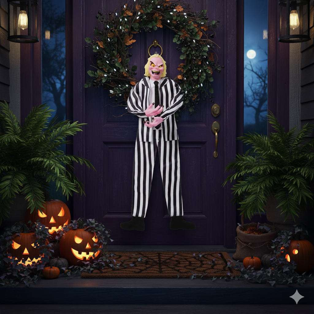 Transform your home into a haunted haven with this spine-chilling Halloween house decoration! This classic Beetlejuice Hanging Decoration 91cm is sure to give trick or treaters and guests a fright and makes the perfect decoration for your haunted home.