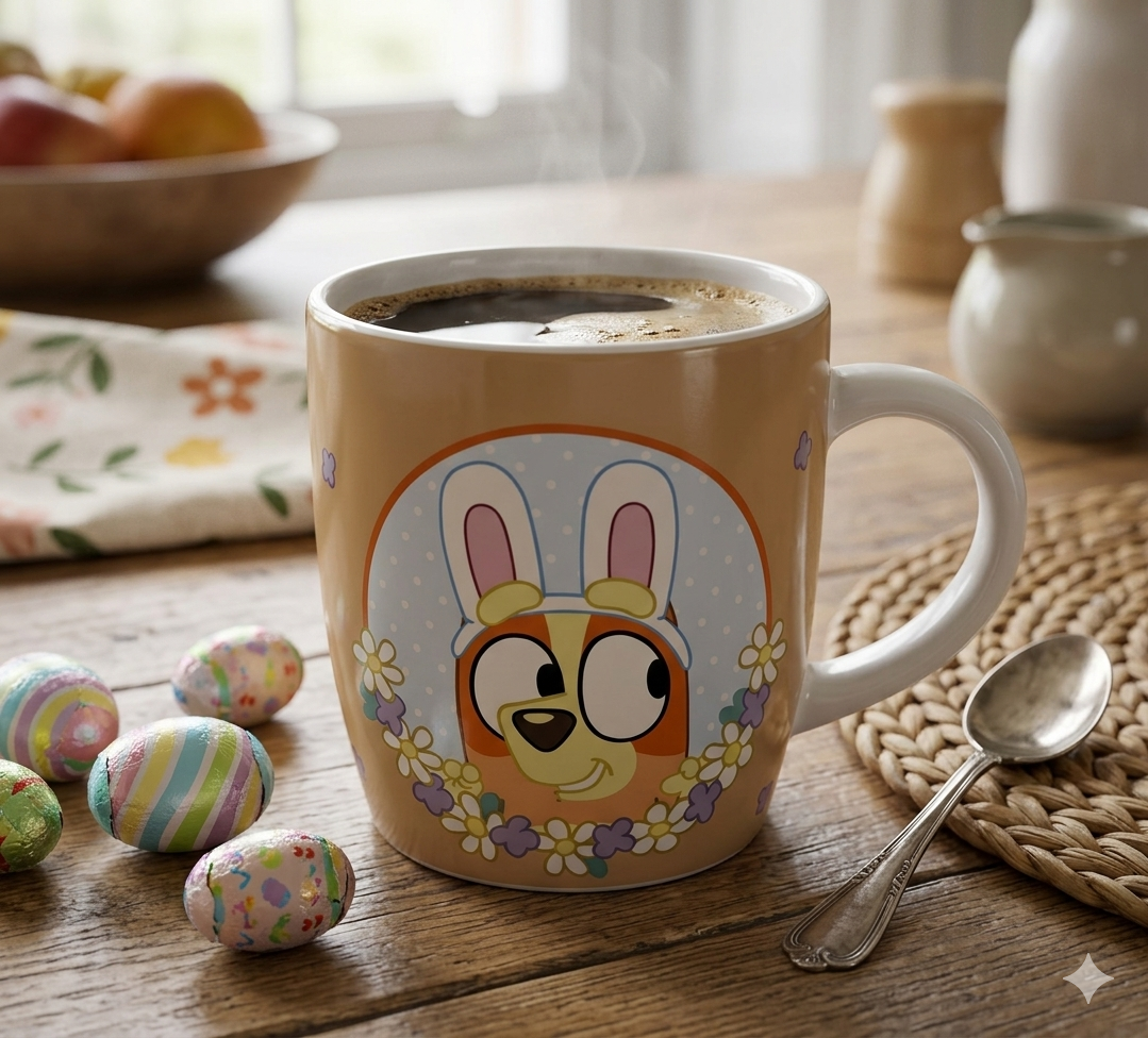 Celebrate Easter with the Bluey Mug! Featuring your favorite characters, this fun and colorful mug is perfect for enjoying your holiday drinks. Add a dash of Bluey’s playful spirit to your Easter celebrations!