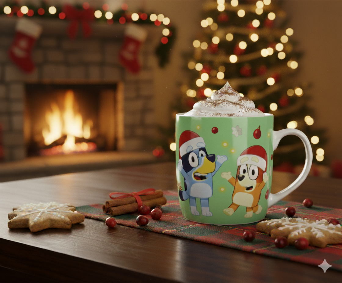 Celebrate Christmas with the Bluey Mug! Featuring your favorite characters, this fun and colorful mug is perfect for enjoying your holiday drinks. Add a dash of Bluey’s playful spirit to your Christmas celebrations!