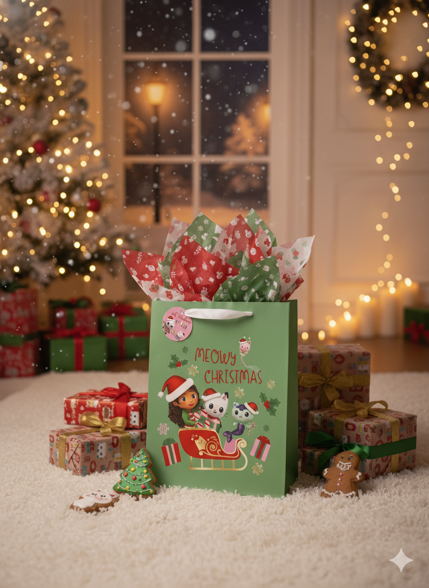Celebrate the festive season with a playful twist that unites your favourite Gabby's Dollhouse magic and holiday spirit. Its design boasts cheerful elements including iconic characters, decorative gift tags, and festive embellishments that make wrapping your presents truly fun. Pair it with your stylish holiday decor or matching gift wrap for a jolly, practical celebration.