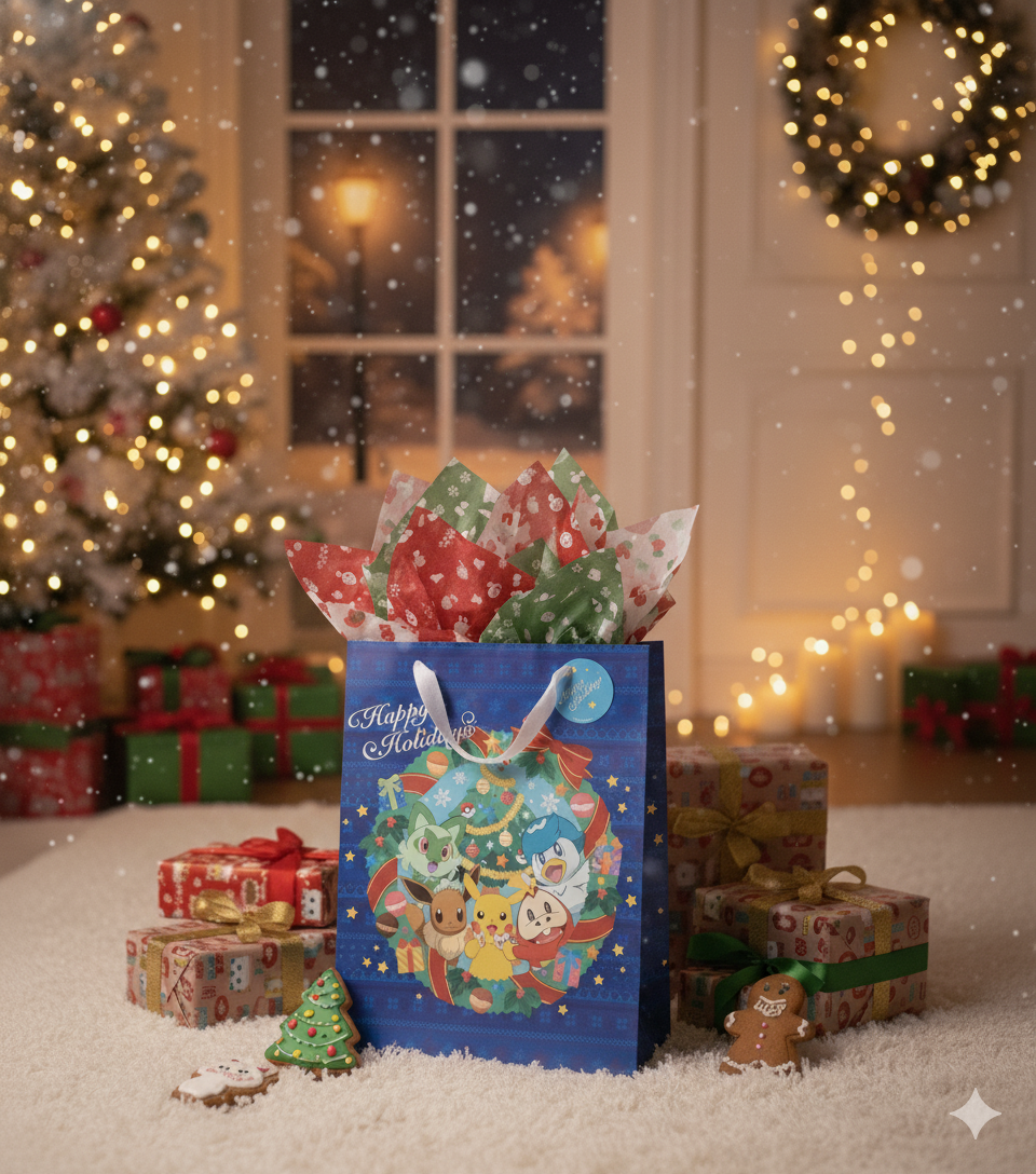 Celebrate the festive season with a playful twist that unites your favourite Pokemon magic and holiday spirit. Its design boasts cheerful elements including iconic characters, decorative gift tags, and festive embellishments that make wrapping your presents truly fun. Pair it with your stylish holiday decor or matching gift wrap for a jolly, practical celebration.