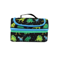 The Billie Double Decker Lunchbox in black features a fun dinosaur design, making lunchtime exciting for kids. With two spacious compartments, an insulated interior, and a secure zip closure, it keeps meals fresh and neatly organized. Perfect for school, outings, or snacks on the go.