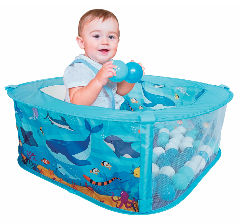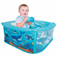 Transform playtime into an underwater adventure with this captivating ocean-themed indoor ball pit. Featuring a vibrant design adorned with whales, dolphins, colourful fish, and other delightful sea creatures, this play pen creates an immersive aquatic world that sparks imagination and encourages active play. The spacious interior provides plenty of room for little ones to dive into fun, whether they're playing with the included balls or their favourite toys. The mesh sides offer excellent visibility, allowing parents to keep a watchful eye on their children while they explore their underwater kingdom. The breathable mesh construction also promotes air circulation, keeping the play area comfortable during extended play sessions. Lightweight and portable, this ball pit is easy to set up in any room of your home, making it perfect for playrooms, bedrooms, or living areas. The eye-catching ocean graphics in cheerful blue tones create an engaging sensory experience that will keep children entertained for hours. Ideal for toddlers and young children, this indoor play pen offers a safe, contained space for energetic play and creative adventures beneath the waves.