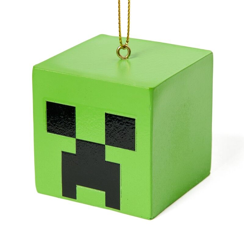 Brighten up your festive space with the delightful charm of the Minecraft Creeper 3D Ornament. This cube-shaped design features a pixelated black face and an attached gold string for easy hanging on your Christmas tree or as a striking piece in themed room decor. Pair it with twinkling fairy lights, merry garlands, or other seasonal accents for a playful holiday display.