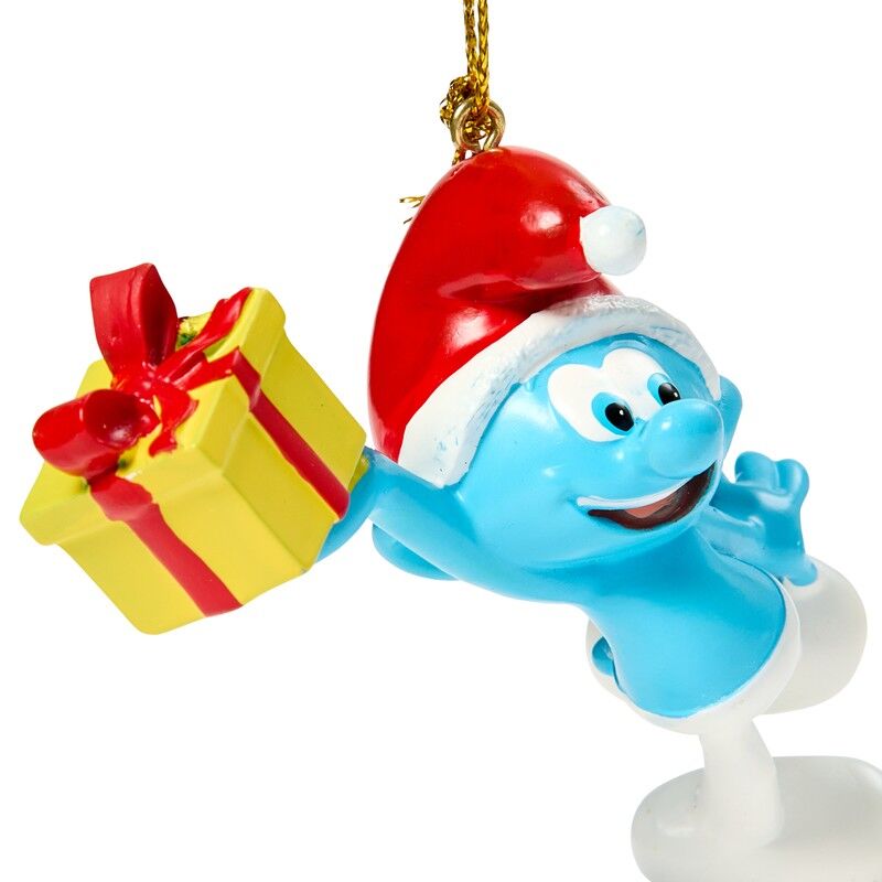 Introducing the Smurf Clumsy 3D Ornament from Smurfs. This playful design features a blue cartoon character in a festive Santa hat, smiling while holding a gift box and ready to hang from your holiday decor. Pair it with your favorite Christmas tree ornaments or festive home accessories for an extra dose of holiday cheer.