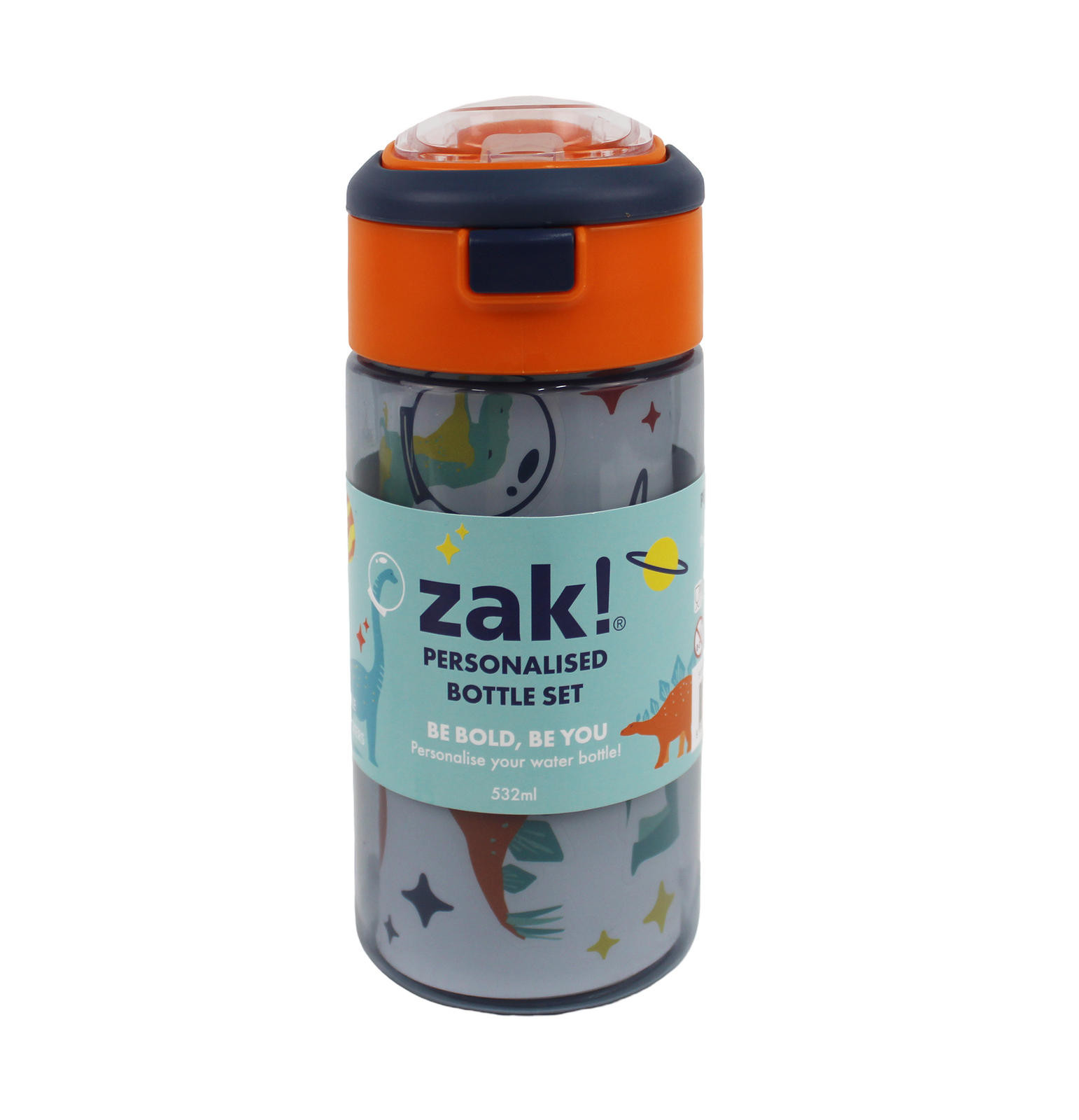 Zak! Personalised Water Bottle with Dinosaur and Space Theme, 532mL