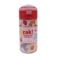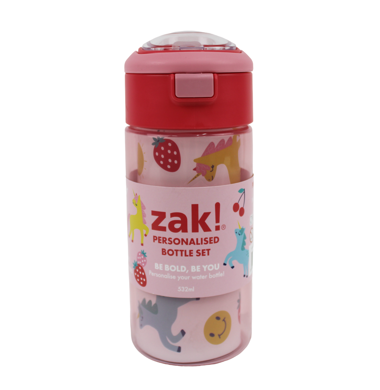 Get creative and decorate your bottle with the easy to apply waterproof stickers, including fun icons and letters. The bottle features an easy to sip, soft straw that opens with the simple push of a button. Perfect for keeping hydrated on the go with its carry handle. This product is dishwasher safe (on the top shelf).